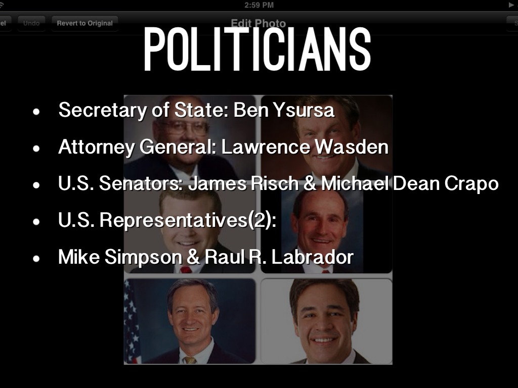 GOVERNOR: BUTCH OTTER--LIEUTENANT GOVERNOR: BRAD LITTLE