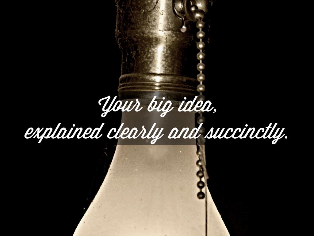 Simple, beautiful, flexible presentation template to share an idea. Ideas: present at a meetup or conference, embed in blog or website, post to social media channels.