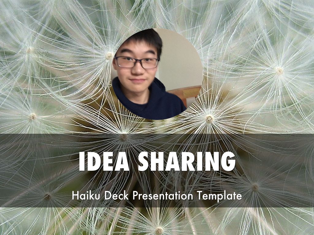 This Haiku Deck presentation template for idea sharing was created using the Volterra theme, image filters on.