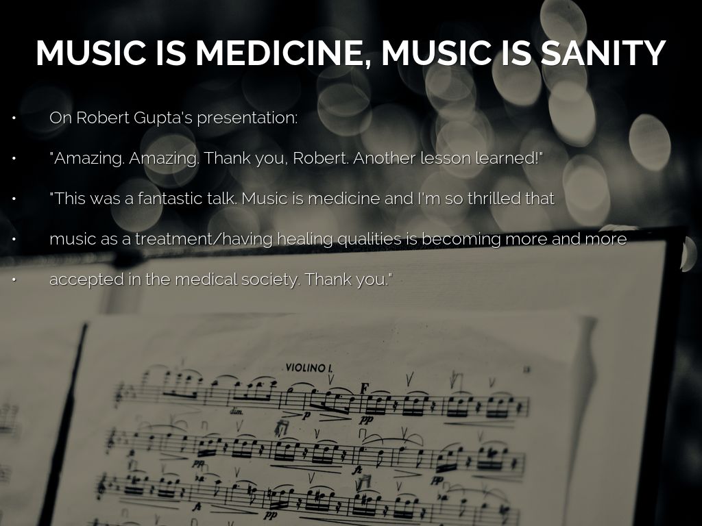 "This was a fantastic talk. Music is medicine and I'm so thrilled that