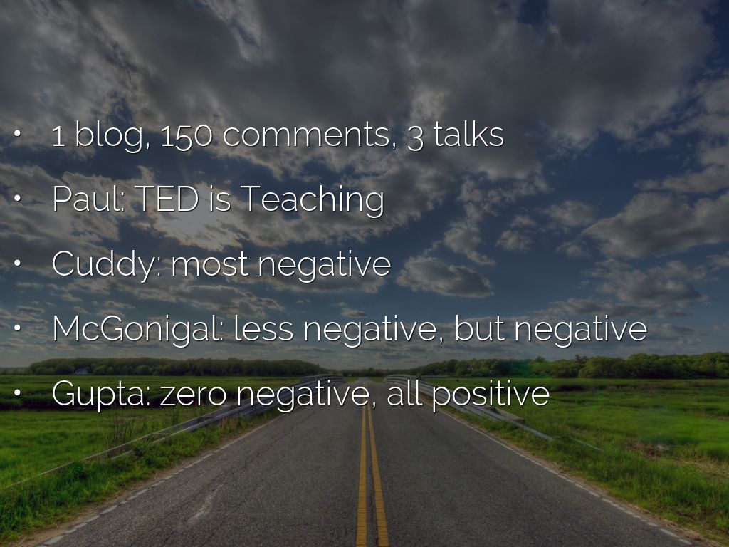 Research Question: Is TED contributing or detracting validity to the conversation of wellness?