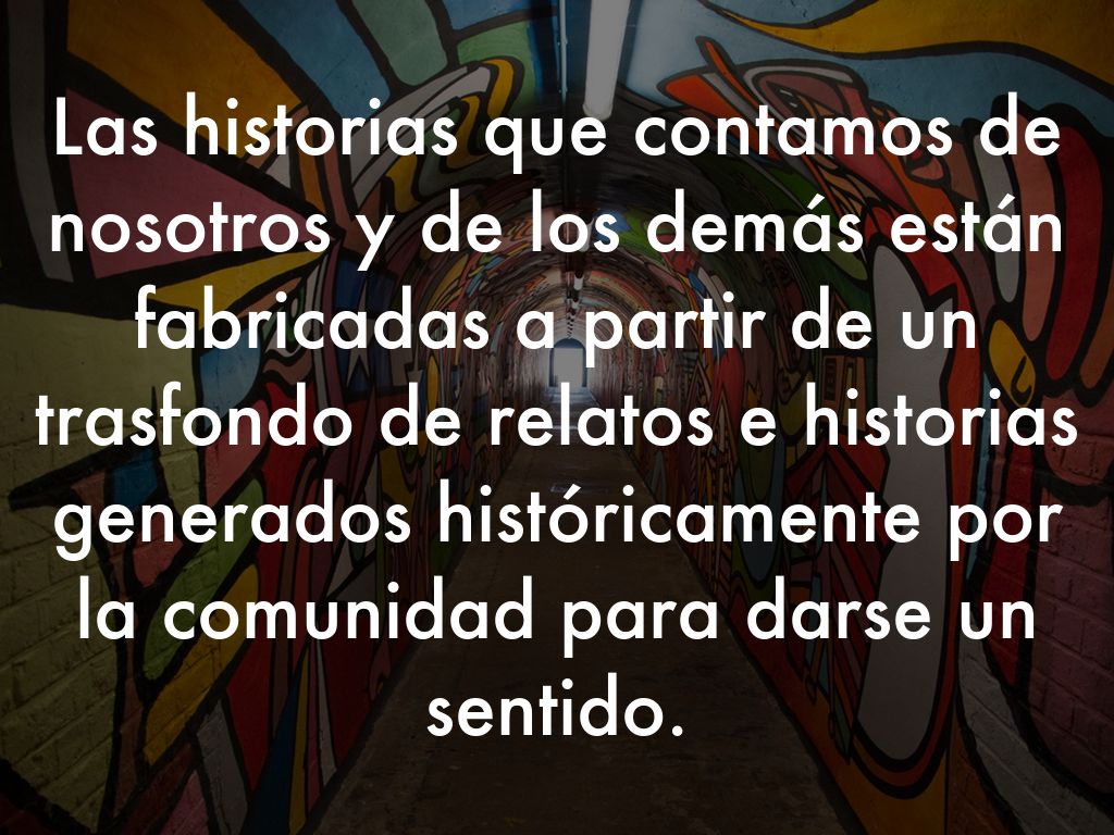 Las historias que contamos de nosotros y de los demás están fabricadas a partir de un trasfondo de relatos e historias generados históricamente por la comunidad para darse un sentido.