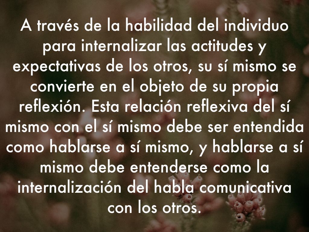 A través de la habilidad del individuo para internalizar las actitudes y expectativas de los otros, su sí mismo se convierte en el objeto de su propia reflexión. Esta relación reflexiva del sí mismo con el sí mismo debe ser entendida como hablarse a sí mismo, y hablarse a sí mismo debe entenderse como la internalización del habla comunicativa con los otros.