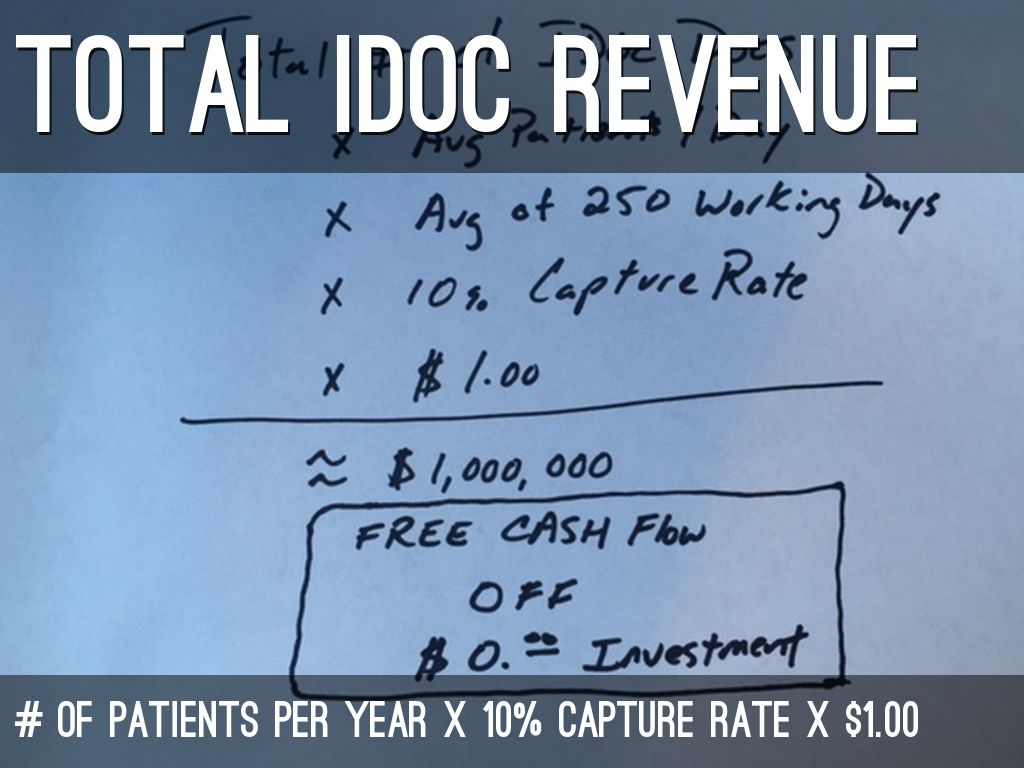 IDoc can make $1.00 per claim when the utilization takes place. It's unclaimed money at this point b/c patients aren't using anything except their pocket book to pay retail.