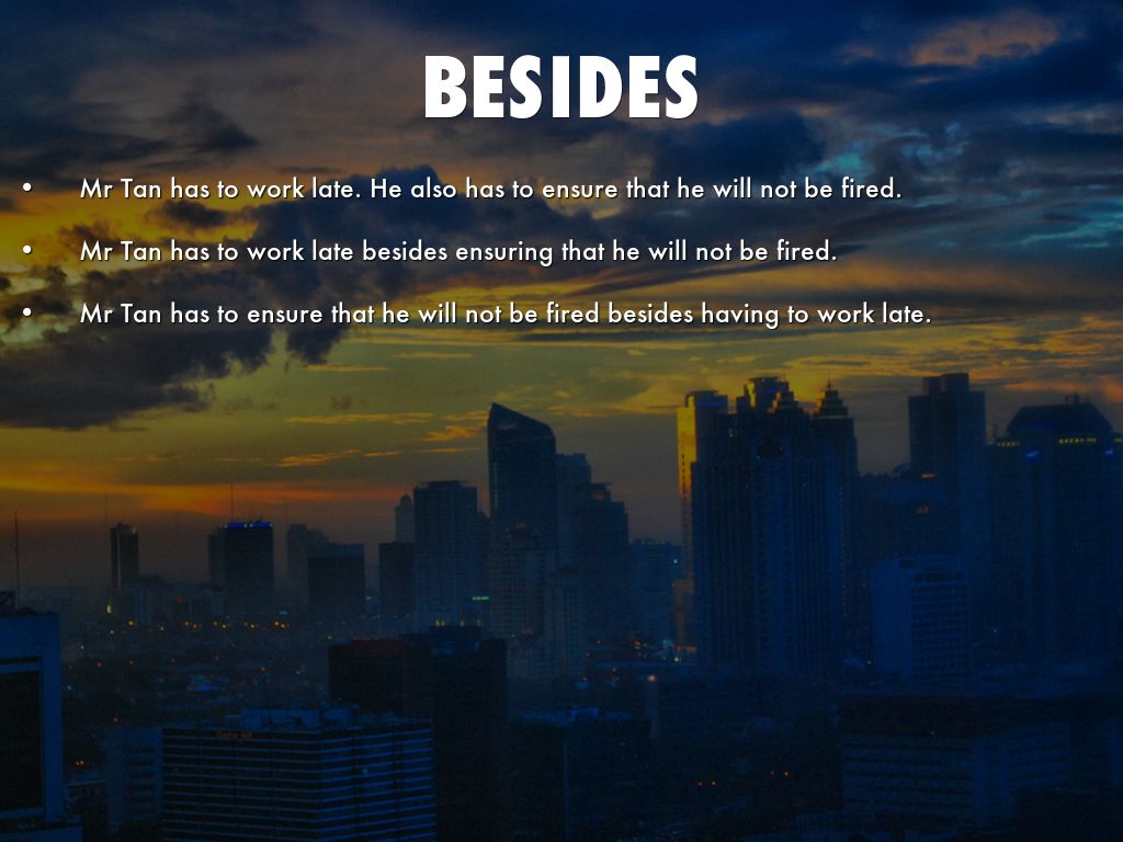 Mr Tan has to work late. He also has to ensure that he will not be fired.