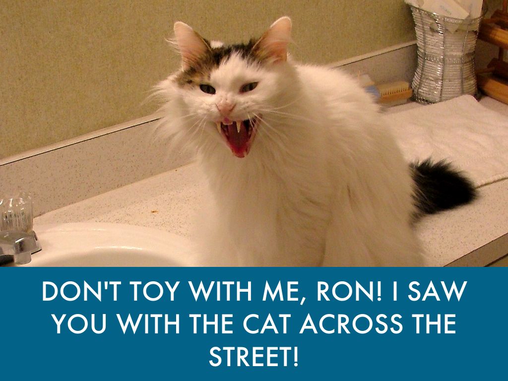 DON'T TOY WITH ME, RON! I SAW YOU WITH THE CAT ACROSS THE STREET!