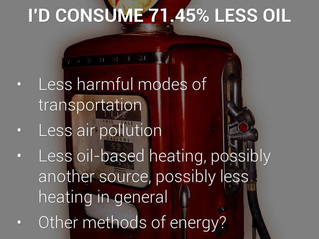 Pros: Spend less on healthcare, use less oil, less air pollution.
