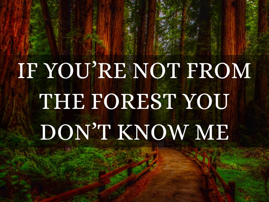IF YOU’RE NOT FROM THE FOREST YOU DON’T KNOW ME