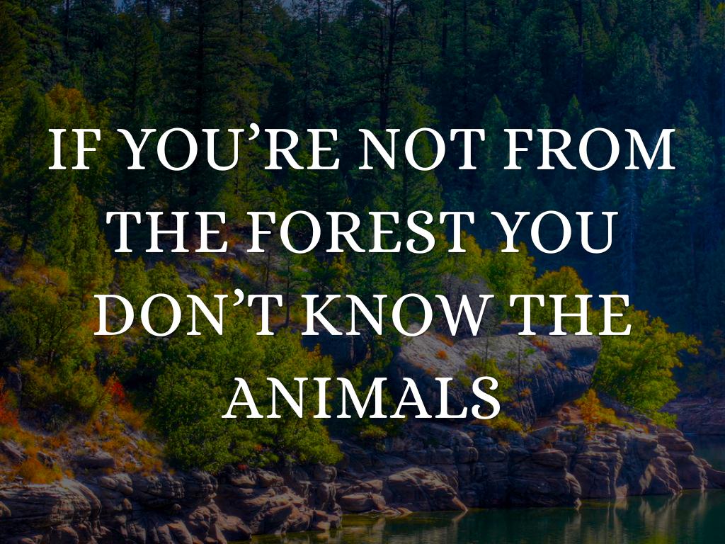 IF YOU’RE NOT FROM THE FOREST YOU DON’T KNOW THE ANIMALS