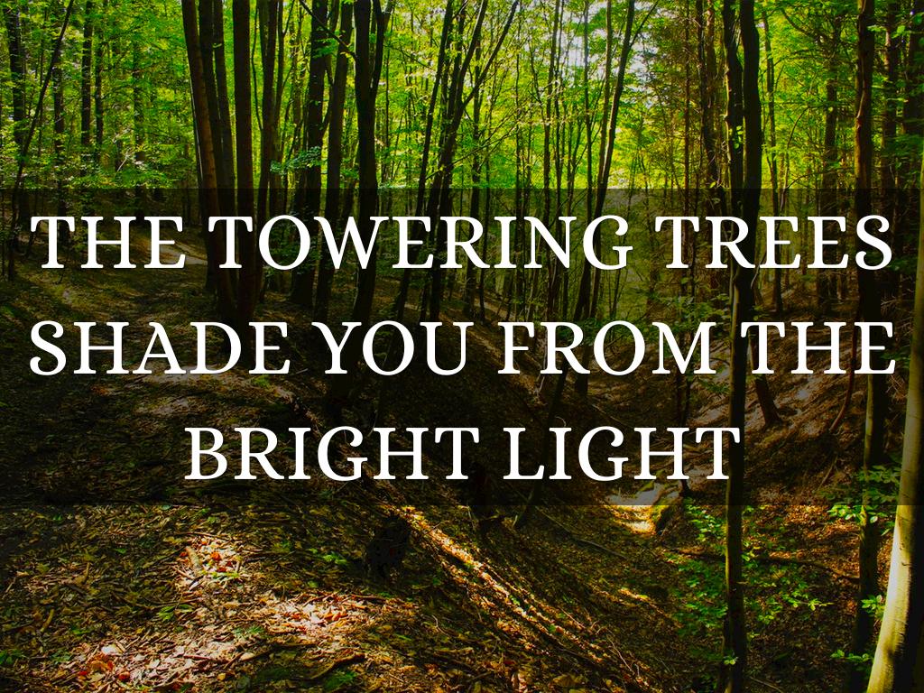 THE TOWERING TREES SHADE YOU FROM THE BRIGHT LIGHT
