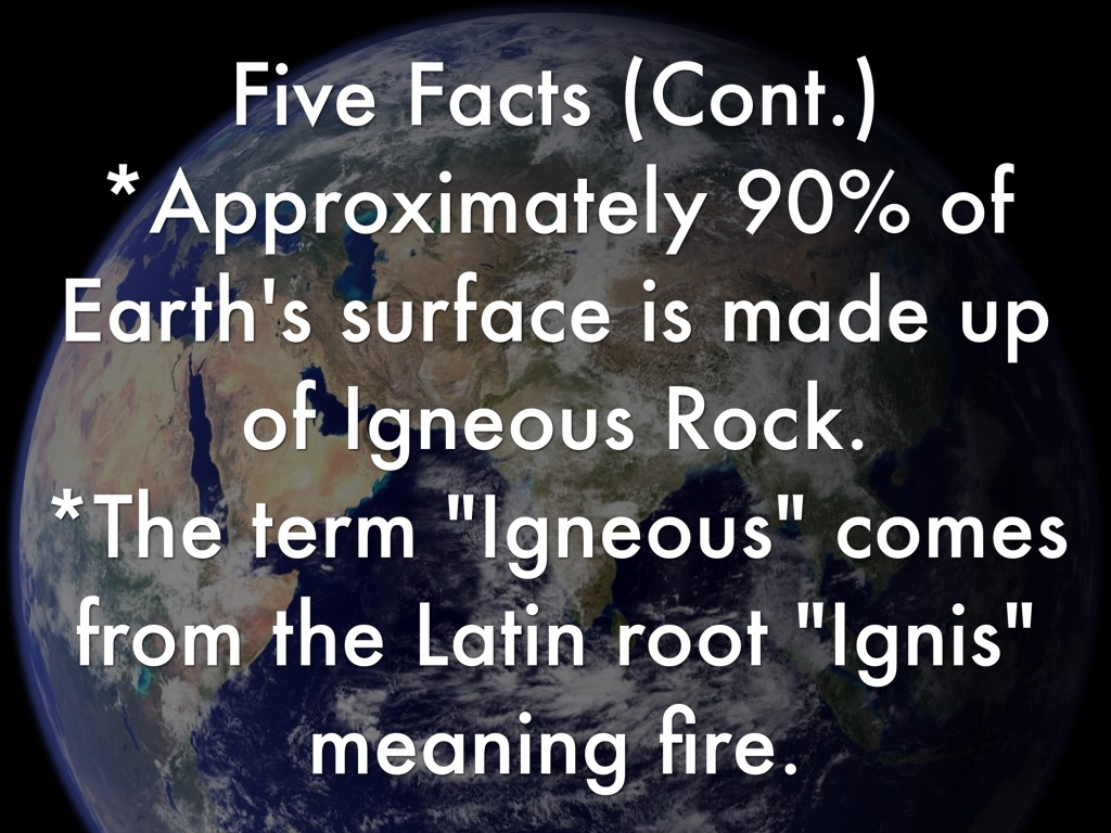 *Approximately 90% of Earth's surface is made up of Igneous Rock.
