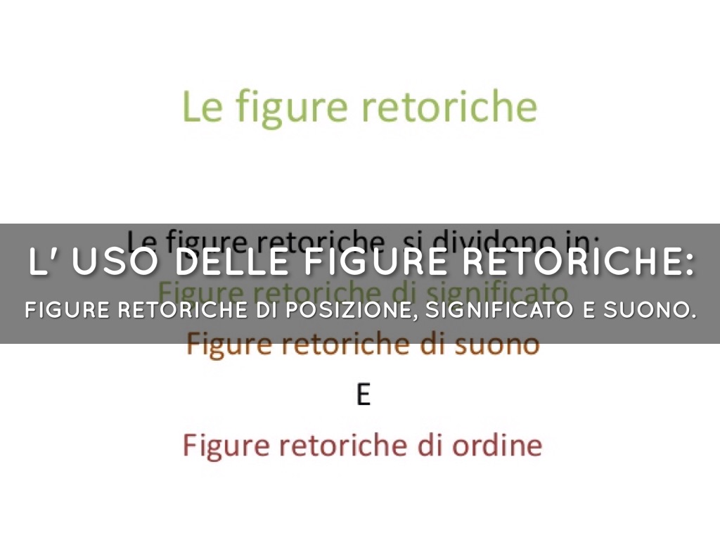 Esistono diversi tipi di figure retoriche, ma le più utIlizzate sono le figure retoriche di significato, che ci permettono di connotare meglio un testo, narrativo o petico che sia. Tra esse ricordiamo la similitudine, introdotta da " come, sembra, assomiglia a... " e la metafora, similitudine abbreviata, in quanto si trasfrisce la qualità direttamente al soggetto, accorgiando il >.