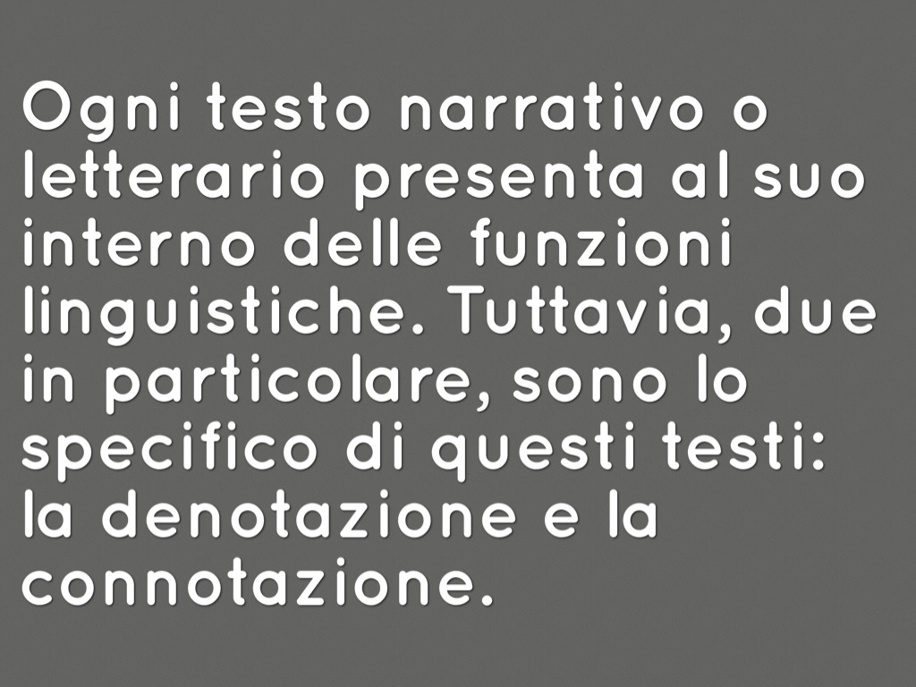Ogni testo narrativo o letterario presenta al suo interno delle funzioni linguistiche. Tuttavia, due in particolare, sono lo specifico di questi testi: la denotazione e la connotazione.