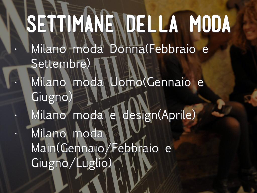 - Milano moda Main(Gennaio/Febbraio e Giugno/Luglio)