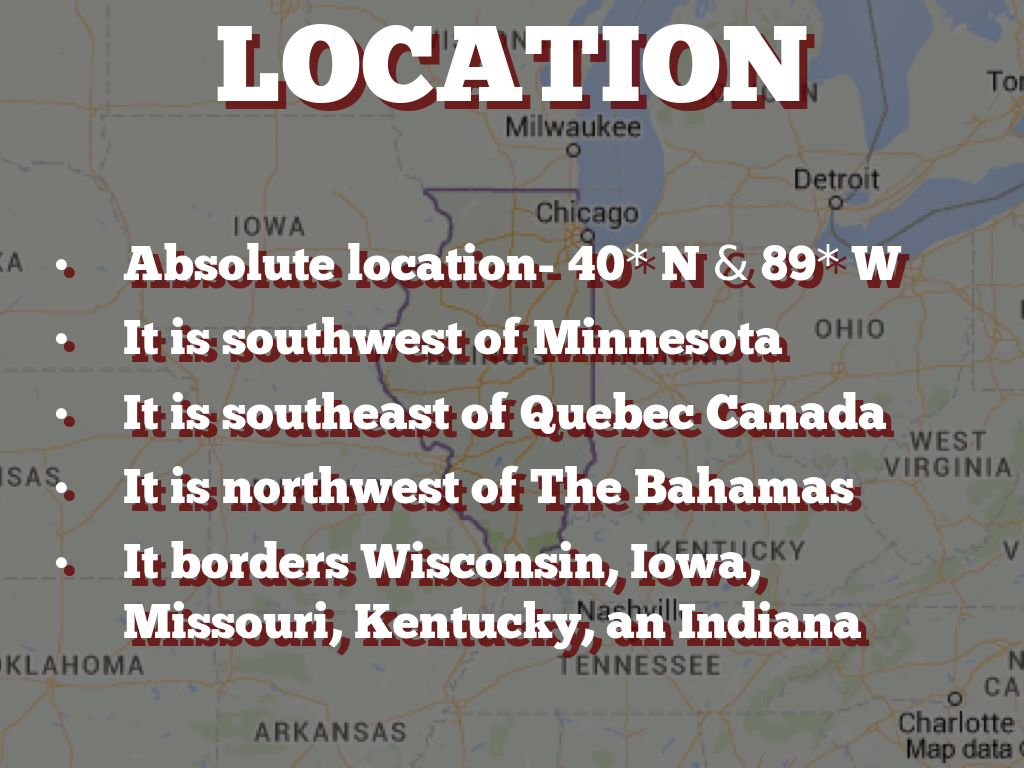 It borders Wisconsin, Iowa, Missouri, Kentucky, an Indiana