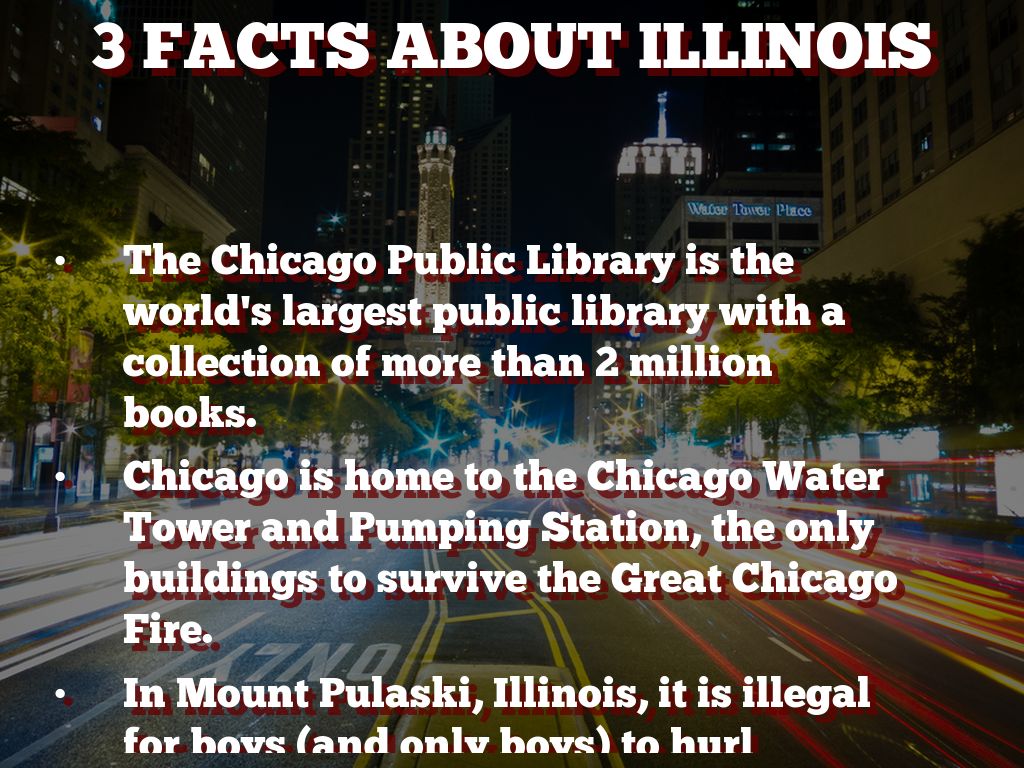 The Chicago Public Library is the world's largest public library with a collection of more than 2 million books.