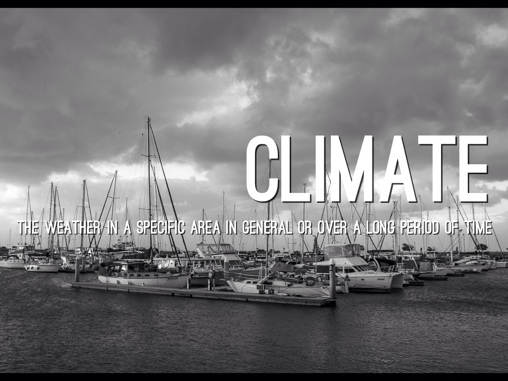 THE WEATHER IN A SPECIFIC AREA IN GENERAL OR OVER A LONG PERIOD OF TIME