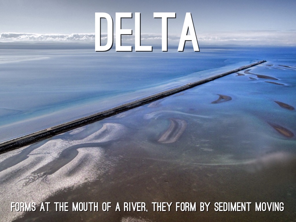 FORMS AT THE MOUTH OF A RIVER, THEY FORM BY SEDIMENT MOVING