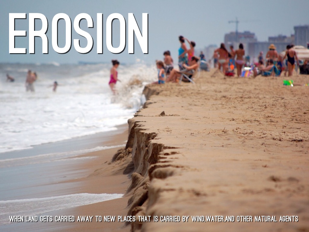 WHEN LAND GETS CARRIED AWAY TO NEW PLACES THAT IS CARRIED BY WIND,WATER,AND OTHER NATURAL AGENTS