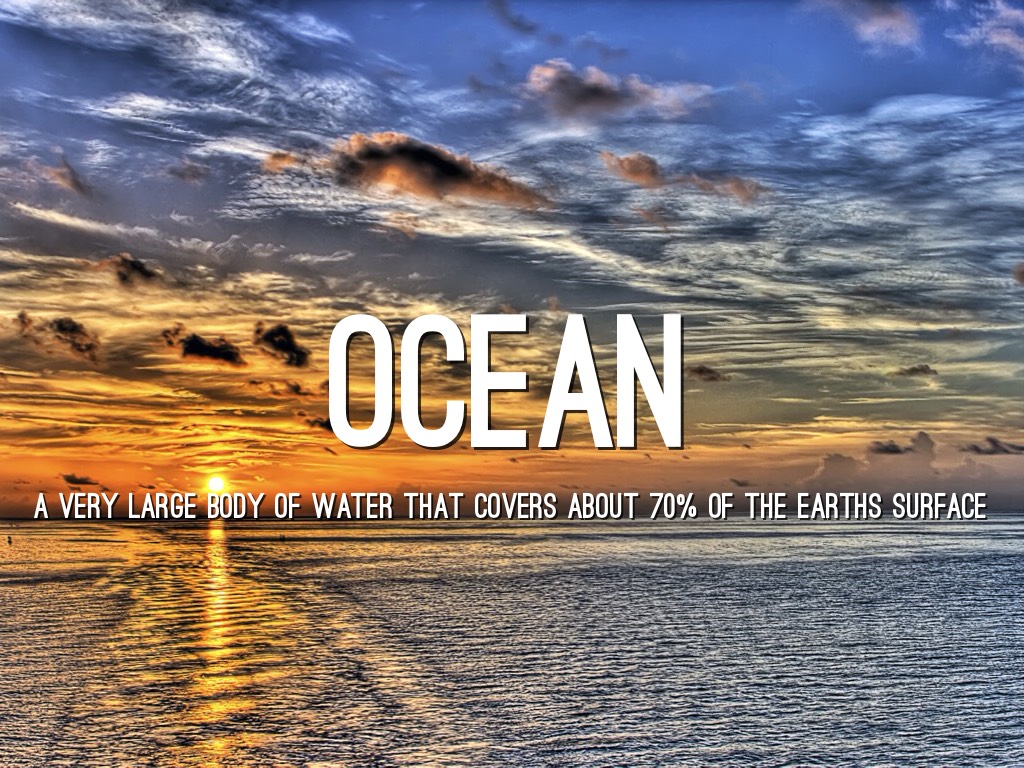 A VERY LARGE BODY OF WATER THAT COVERS ABOUT 70% OF THE EARTHS SURFACE