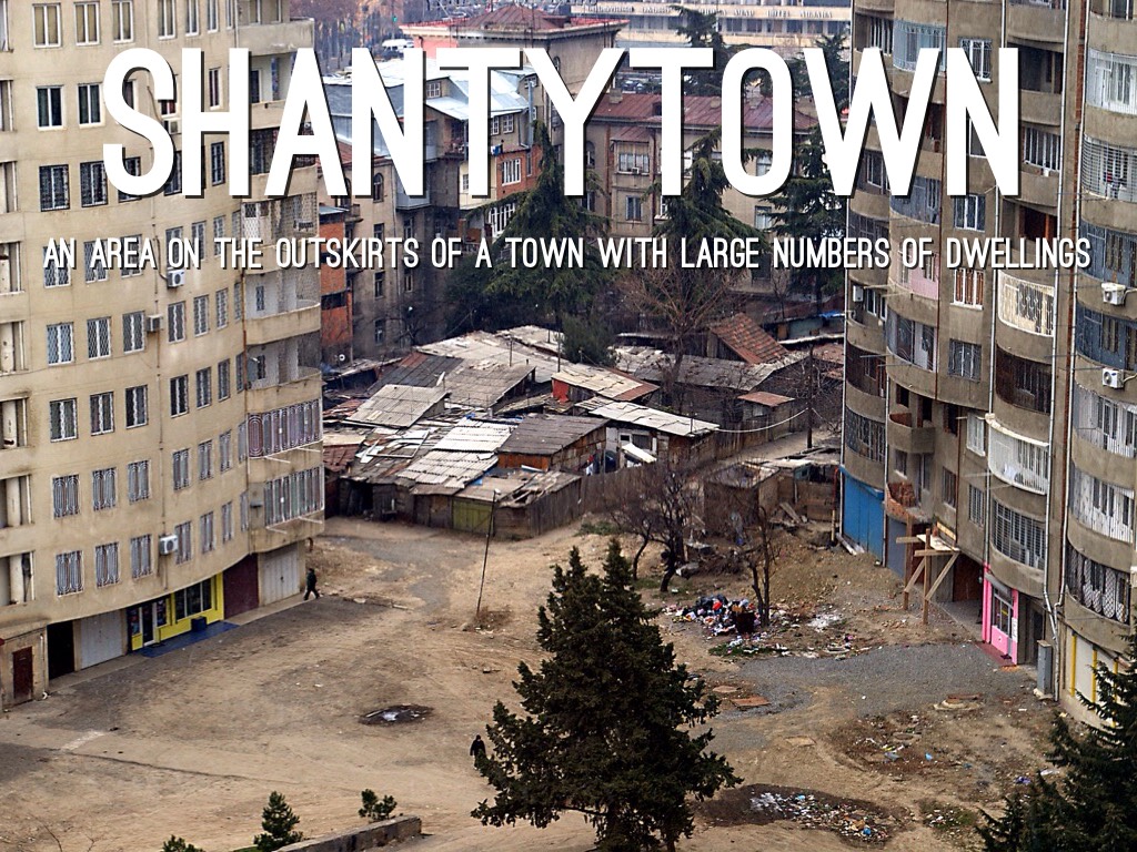 AN AREA ON THE OUTSKIRTS OF A TOWN WITH LARGE NUMBERS OF DWELLINGS