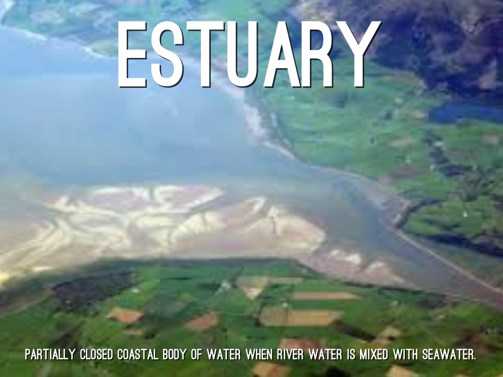 PARTIALLY CLOSED COASTAL BODY OF WATER WHEN RIVER WATER IS MIXED WITH SEAWATER.