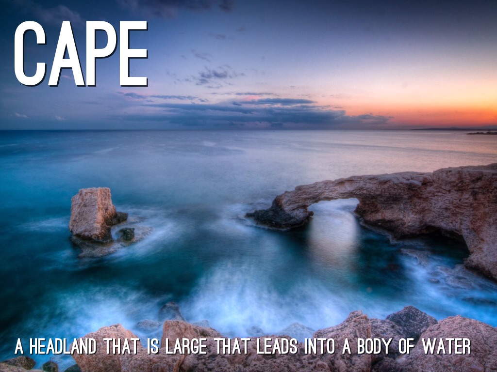 A HEADLAND THAT IS LARGE THAT LEADS INTO A BODY OF WATER
