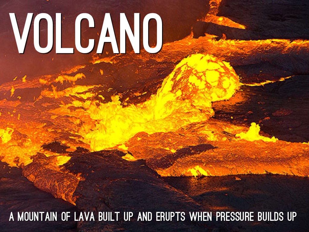 A MOUNTAIN OF LAVA BUILT UP AND ERUPTS WHEN PRESSURE BUILDS UP