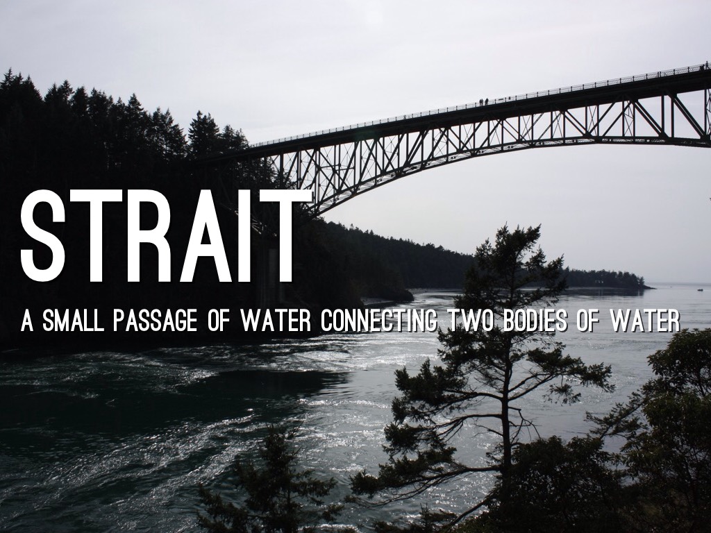 A BODY OF WATER THAT JOINS TWO LARGER BODIES OF WATER