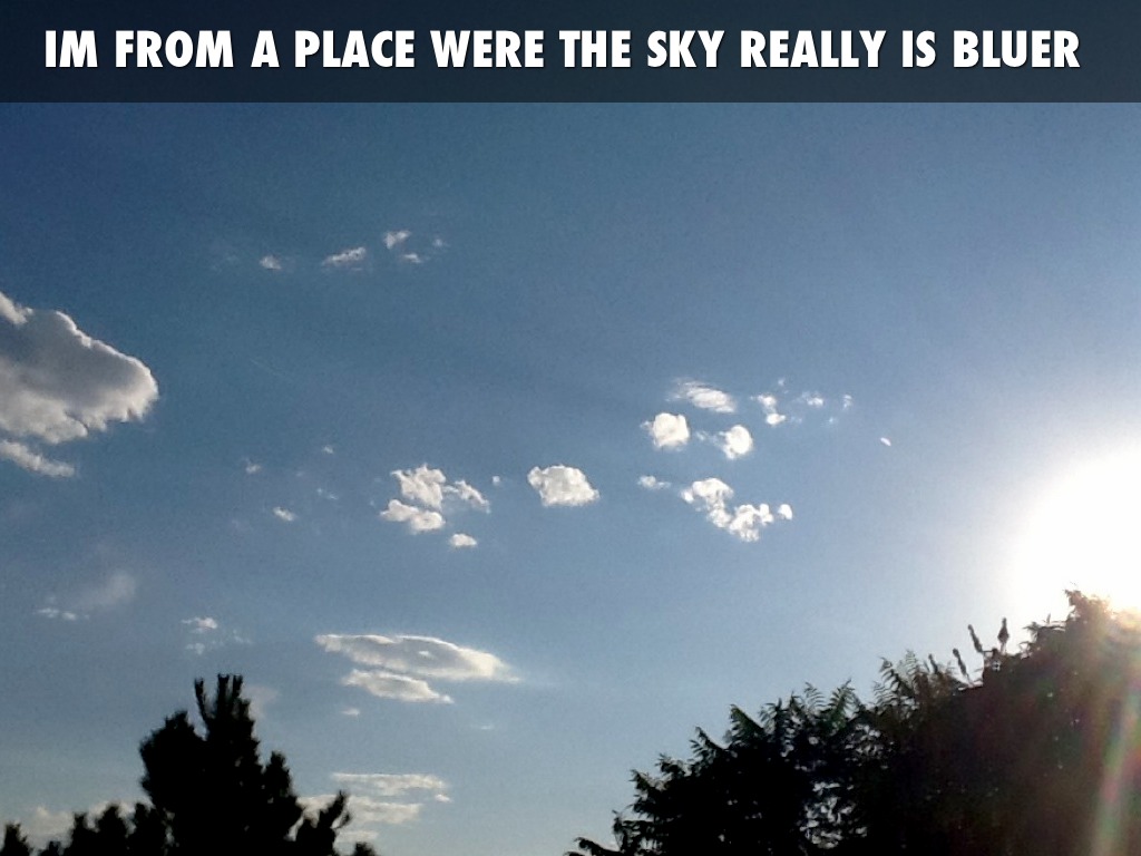 IM FROM A PLACE WERE THE SKY REALLY IS BLUER