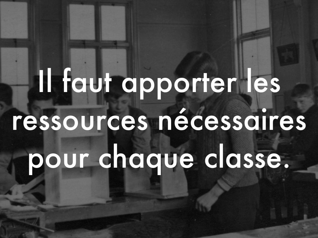 Il faut apporter les ressources nécessaires pour chaque classe.