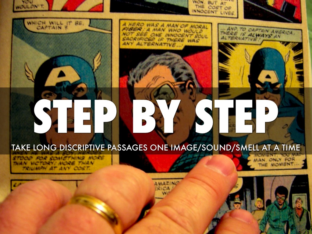 Reading lesson to help 7th graders identify how a writer utilizes sensory details to make a story seem more real.
