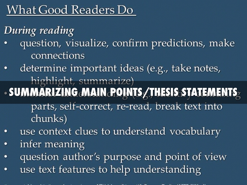 SUMMARIZING MAIN POINTS/THESIS STATEMENTS