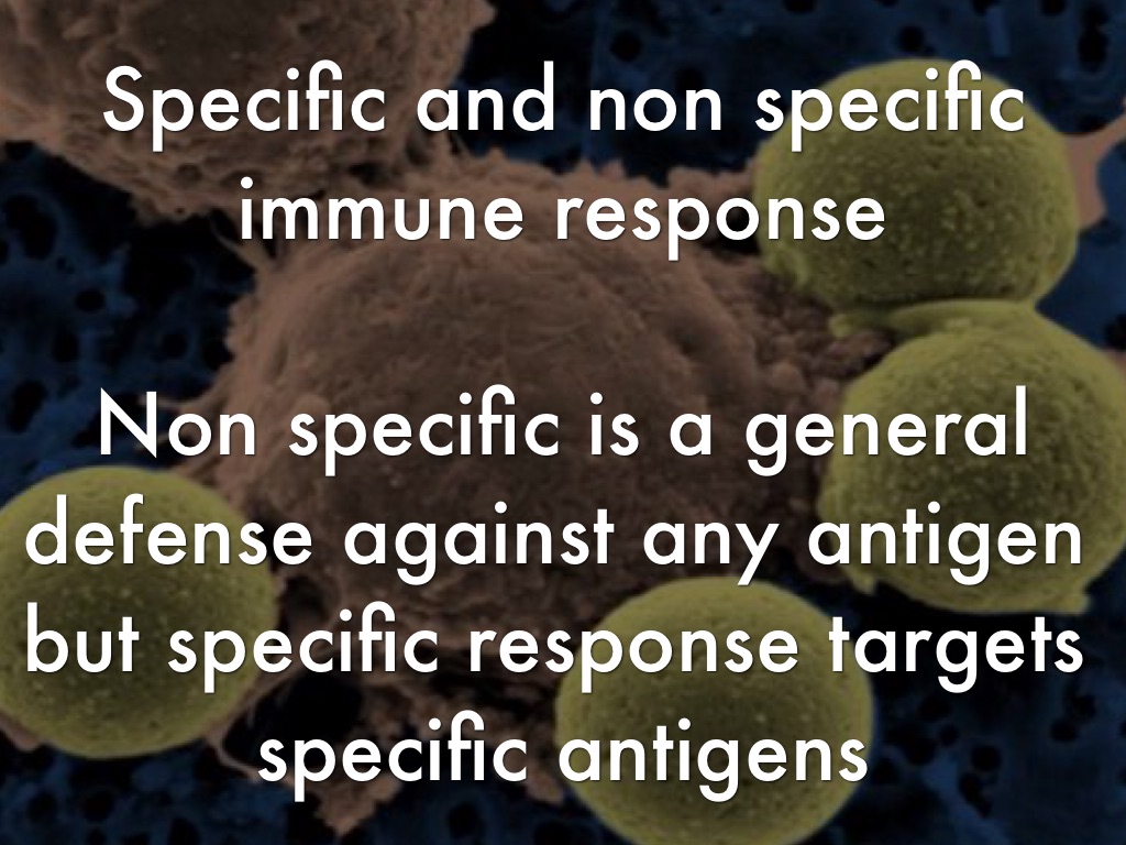 Non specific is a general defense against any antigen but specific response targets specific antigens