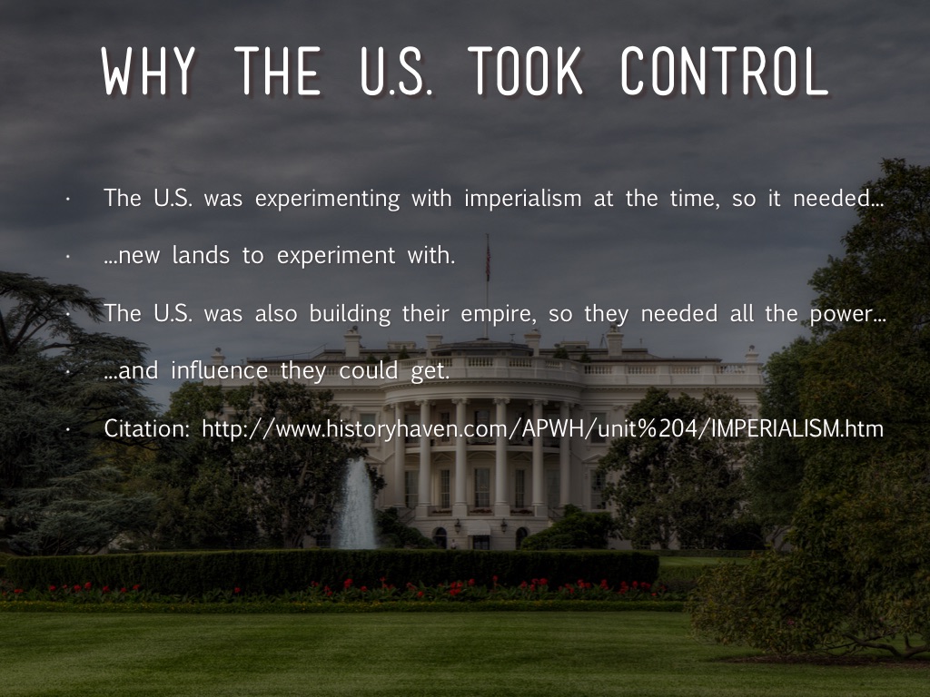 The U.S. was experimenting with imperialism at the time, so it needed...