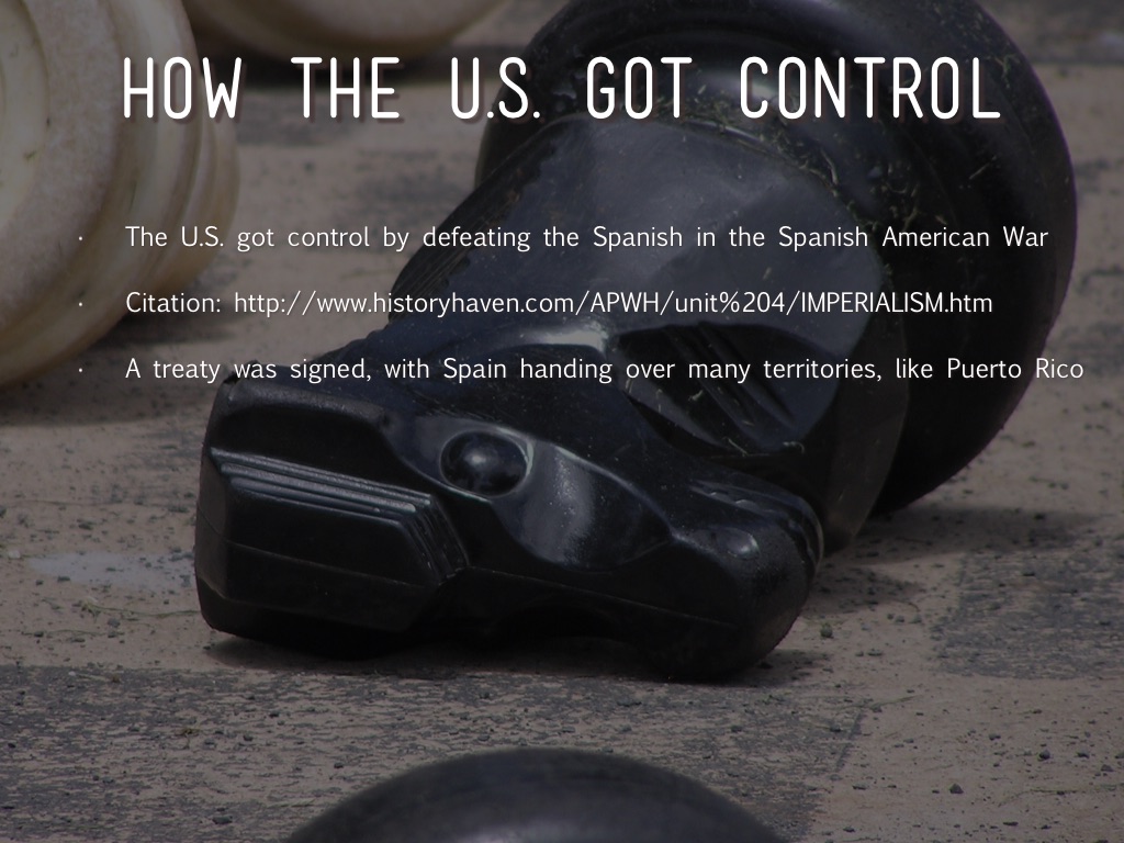 The U.S. got control by defeating the Spanish in the Spanish American War