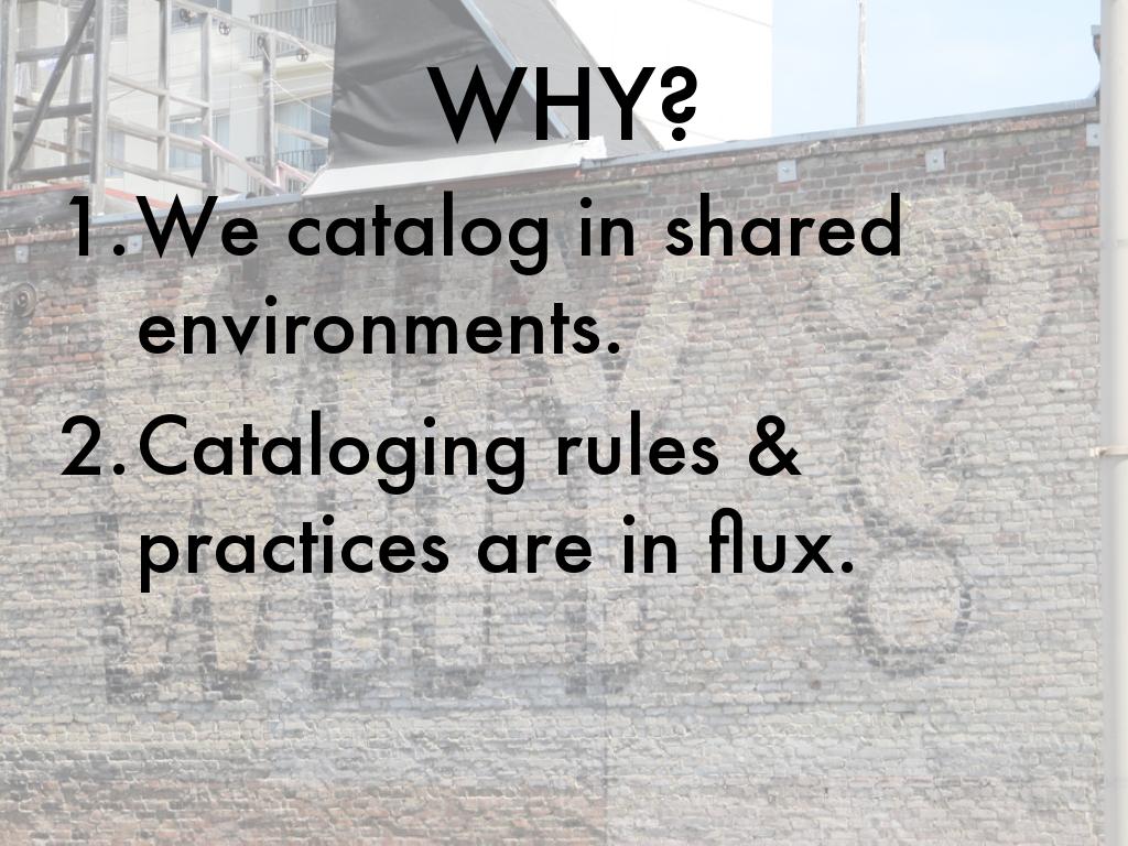 “… do not underestimate the extent to which existing workflows really are tainted by the dominance of the technologies we use; MARC, AACR2, ISBD, FRBR & co. have all done their bit to create workflows and systems that simply don’t migrate well.” Rurik Greenall, BIBFRAME listserv, May 26, 2014