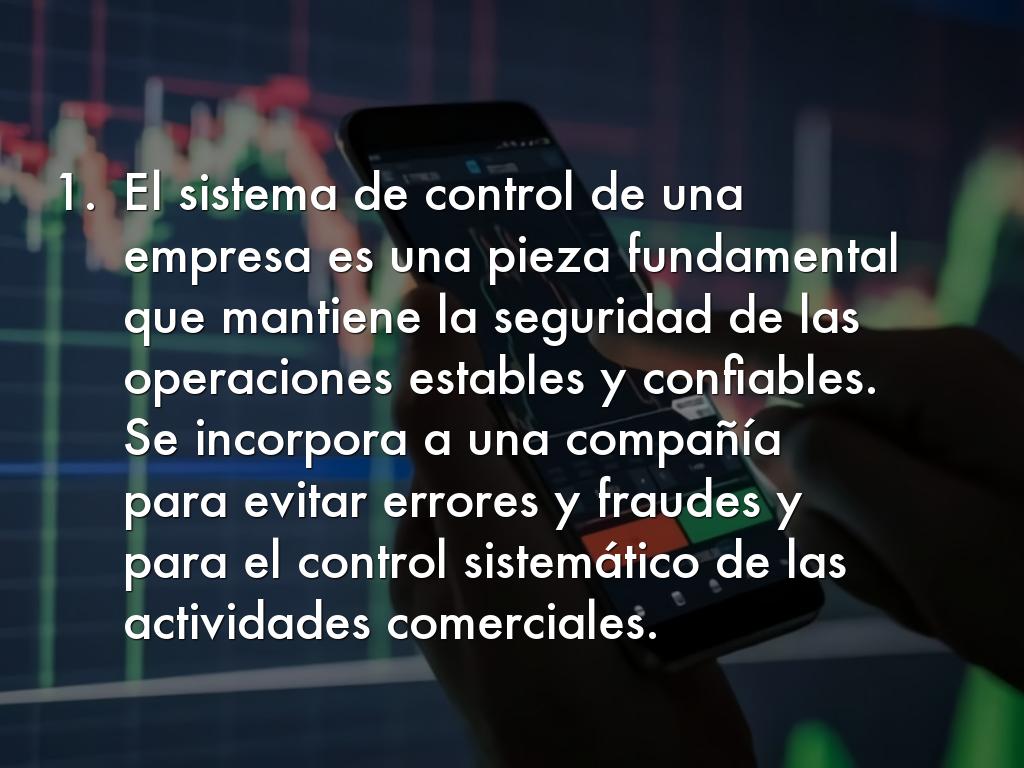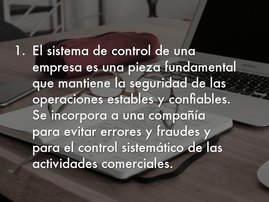 • El sistema de control de una empresa es una pieza fundamental que mantiene la seguridad de las operaciones estables y confiables. Se incorpora a una compañía para evitar errores y fraudes y para el control sistemático de las actividades comerciales.