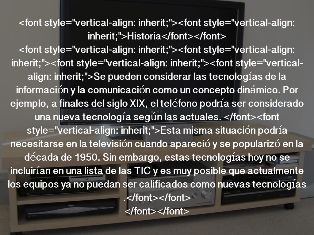 Se pueden considerar las tecnologías de la información y la comunicación como un concepto dinámico. Por ejemplo, a finales del siglo XIX, el teléfono podría ser considerado una nueva tecnología según las actuales. Esta misma situación podría necesitarse en la televisión cuando apareció y se popularizó en la década de 1950. Sin embargo, estas tecnologías hoy no se incluirían en una lista de las TIC y es muy posible que actualmente los equipos ya no puedan ser calificados como nuevas tecnologías .
