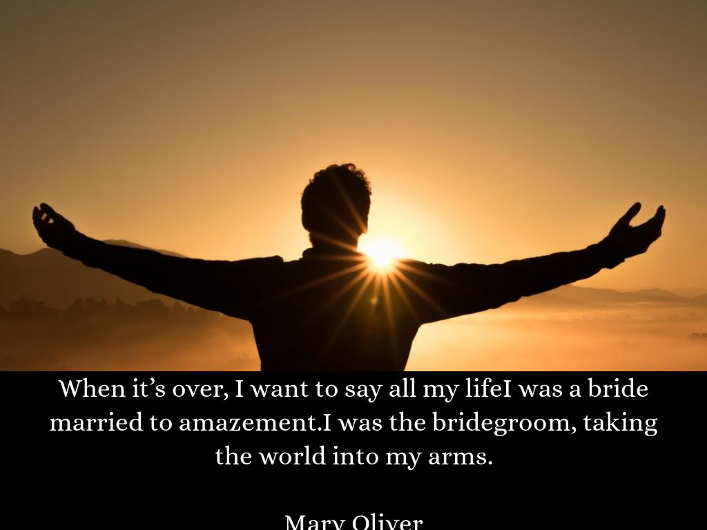 When it’s over, I want to say all my lifeI was a bride married to amazement.I was the bridegroom, taking the world into my arms.