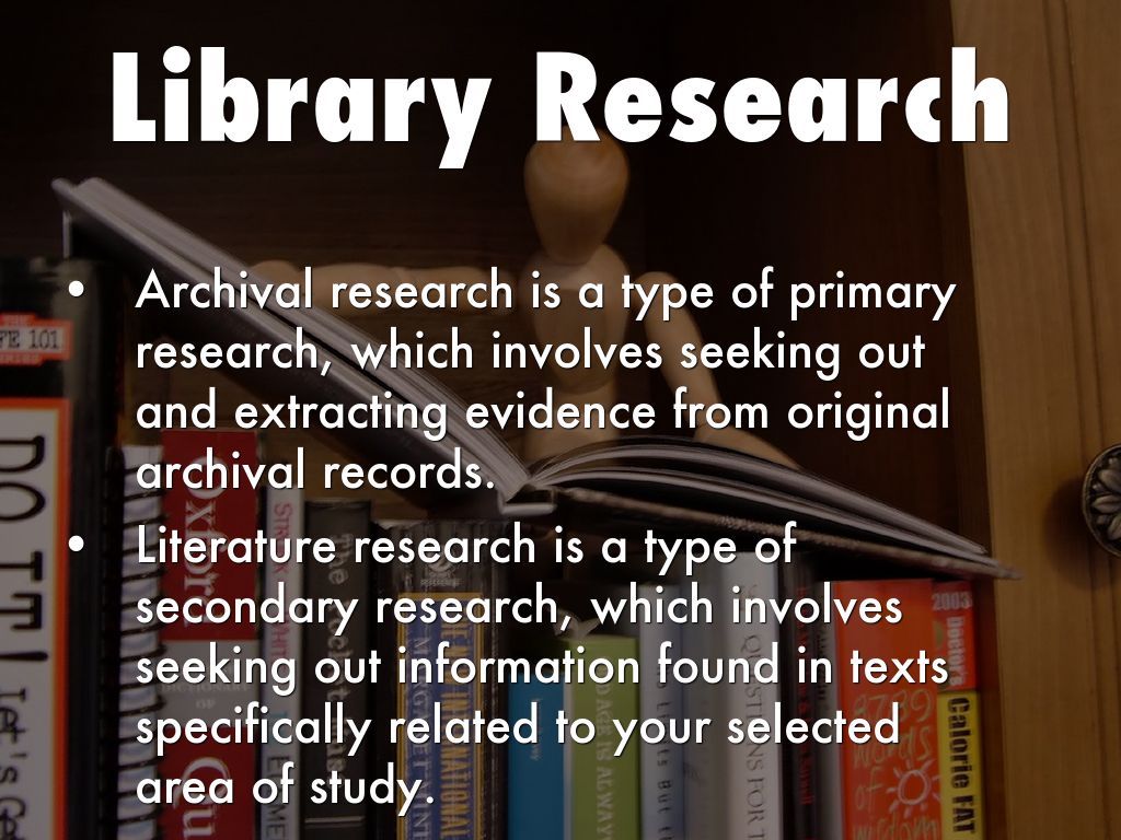Archival research is a type of primary research, which involves seeking out and extracting evidence from original archival records.