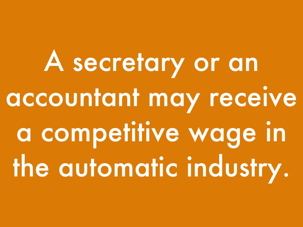 A secretary or an accountant may receive a competitive wage in the automatic industry.
