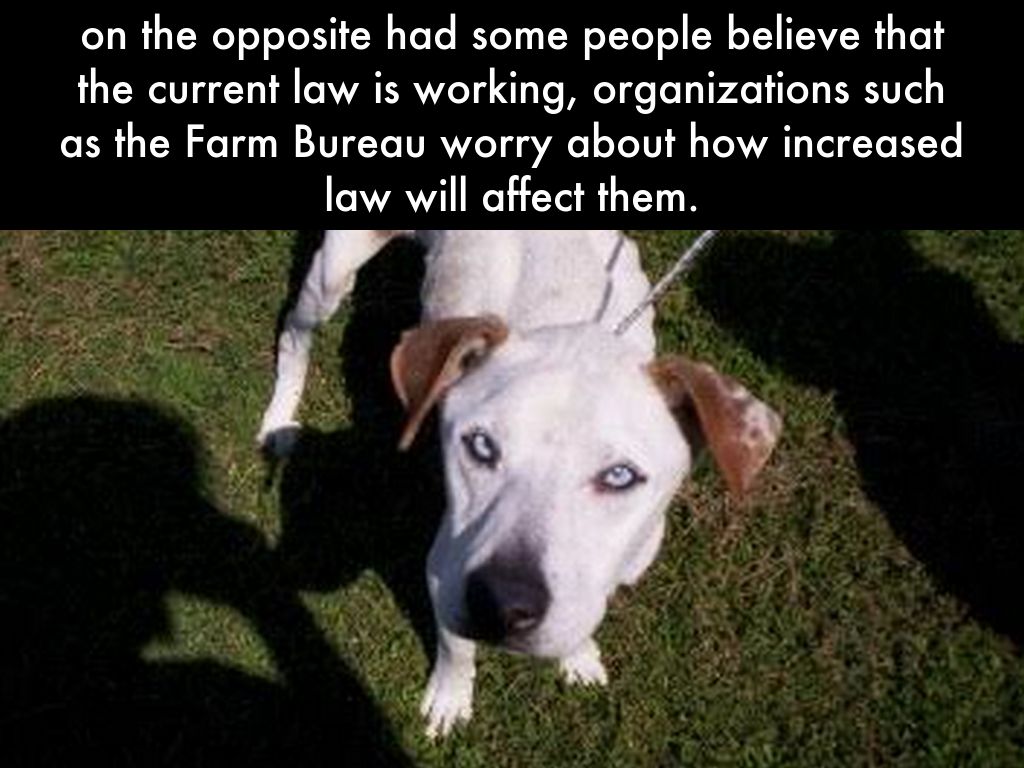 on the opposite had some people believe that the current law is working, organizations such as the Farm Bureau worry about how increased law will affect them.