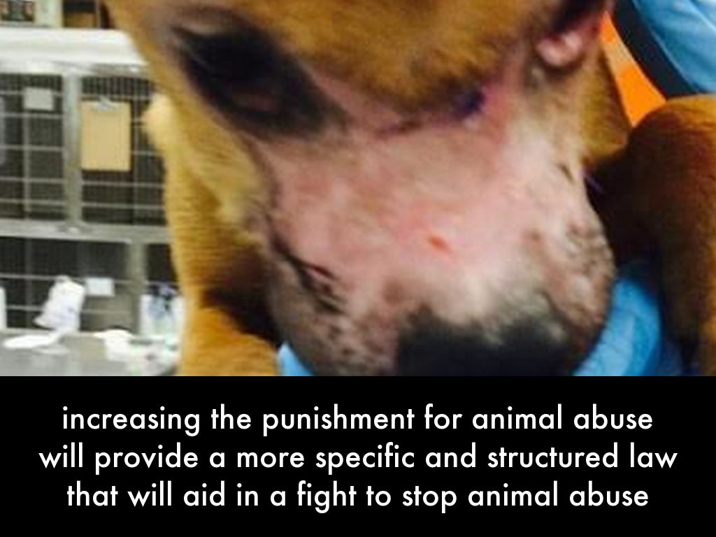 increasing the punishment for animal abuse will provide a more specific and structured law that will aid in a fight to stop animal abuse