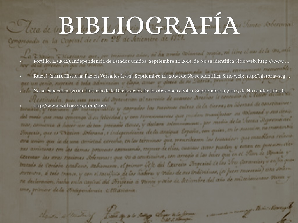 No se especifica. (2013). Historia de la Declaración De los derechos civiles. Septiembre 10,2014, de No se identifica Sitio web: