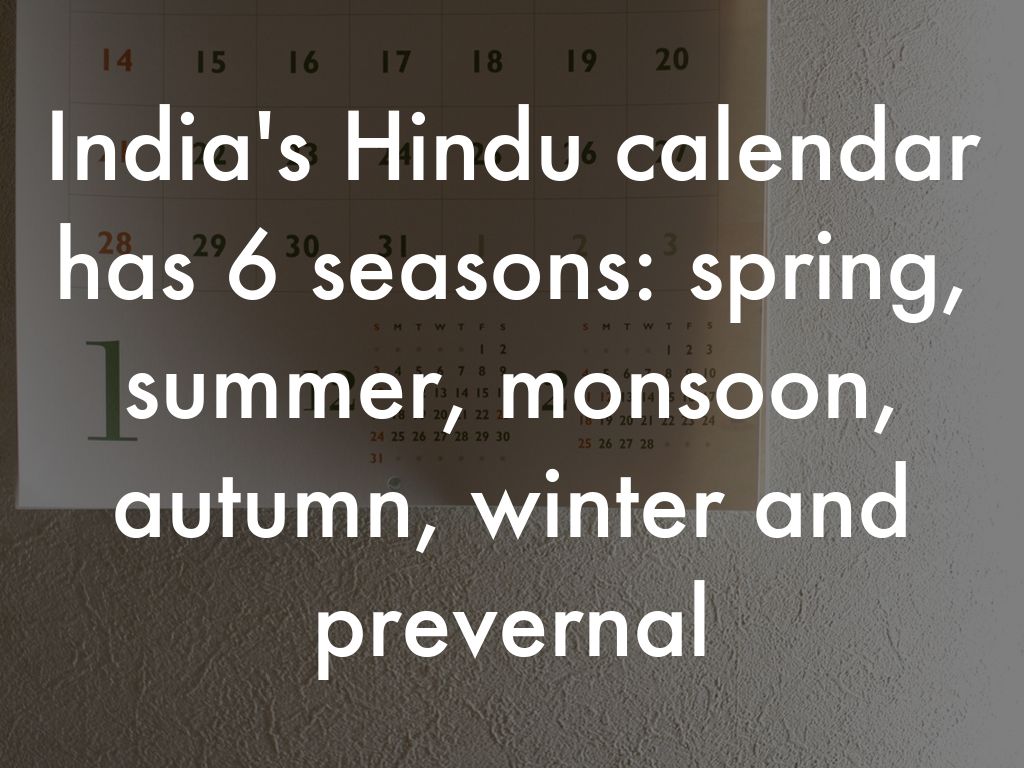 India's Hindu calendar has 6 seasons: spring, summer, monsoon, autumn, winter and prevernal