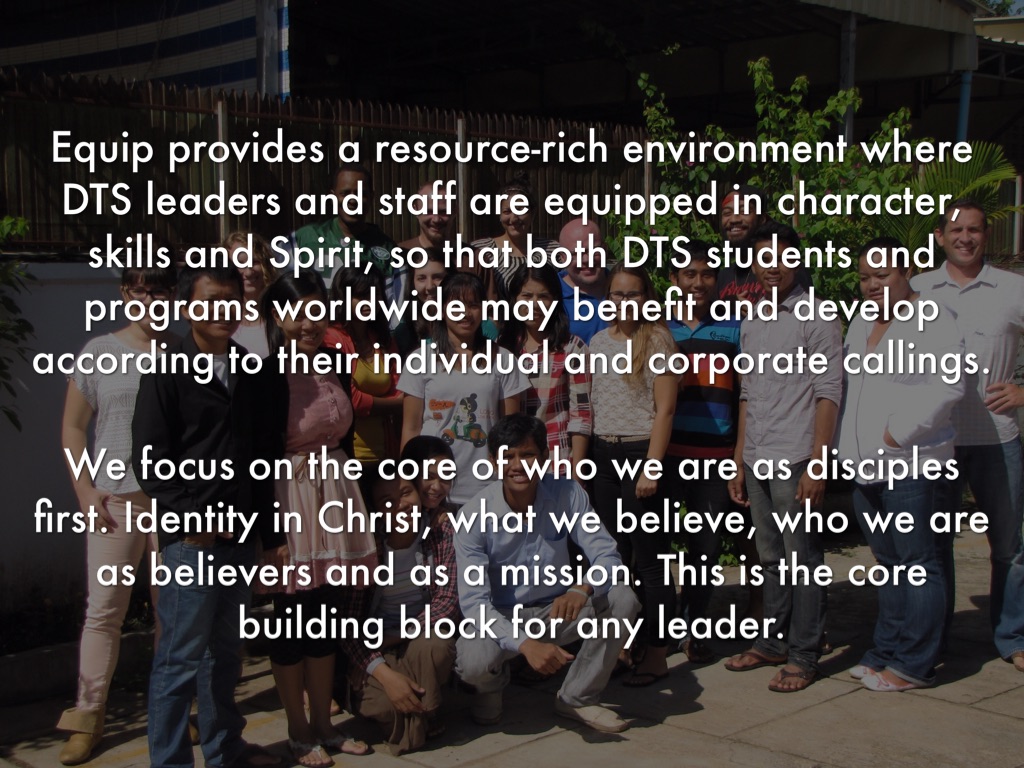 Equip provides a resource-rich environment where DTS leaders and staff are equipped in character, skills and Spirit, so that both DTS students and programs worldwide may benefit and develop according to their individual and corporate callings.