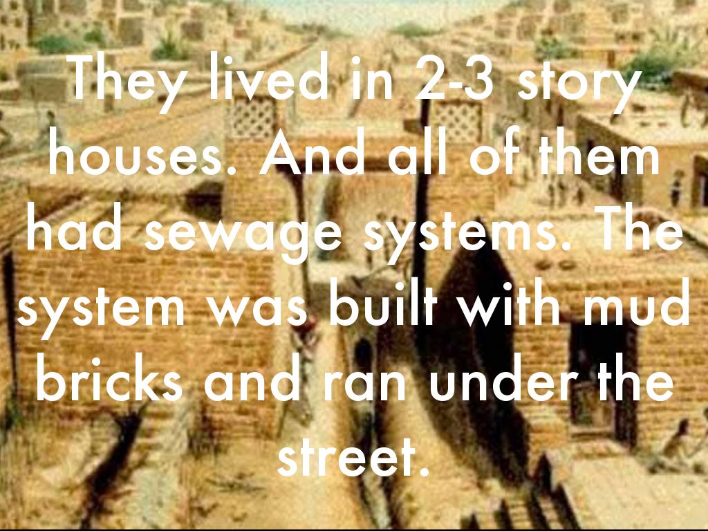 They lived in 2-3 story houses. And all of them had sewage systems. The system was built with mud bricks and ran under the street.