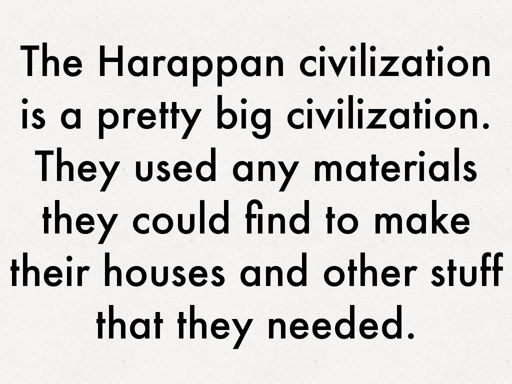 The Harappan civilization is a pretty big civilization. They used any materials they could find to make their houses and other stuff that they needed.