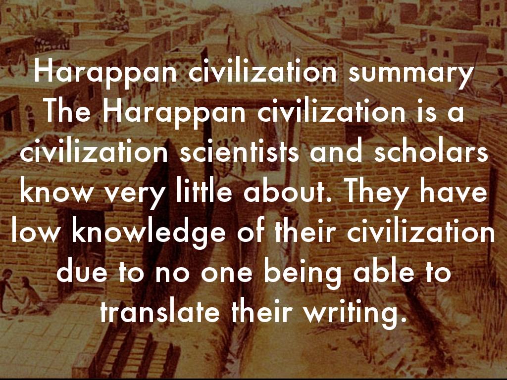 The Harappan civilization is a civilization scientists and scholars know very little about. They have low knowledge of their civilization due to no one being able to translate their writing.